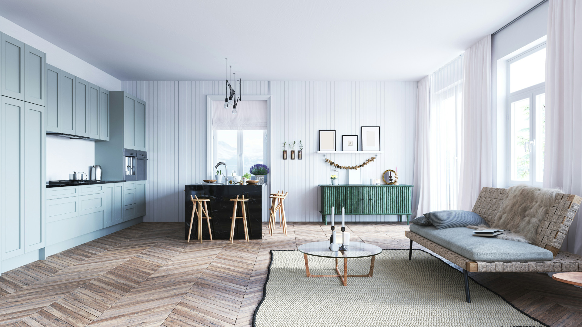 Selvom hvert rum har sin funktion, bør materialevalget hænge sammen på tværs af boligen. Gentag farver, strukturer eller materialer i flere rum for at skabe en rød tråd. Har du for eksempel valgt trælameller i stuen, kan du lade samme træsort gå igen som panel i gangen eller som detalje i køkkenet.